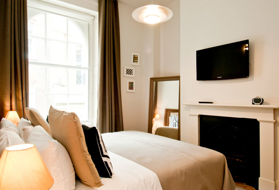 Three spacious apartments sit inside a Grade II listed townhouse. Heritage features, contemporary comfort, & a quiet retreat from the City’s energy.